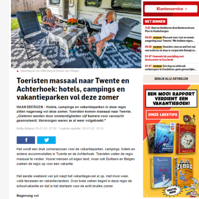 Toeristen massaal naar Twente en Achterhoek: hotels, campings en vakantieparken vol deze zomer