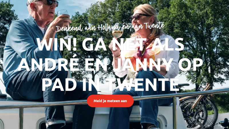 2%Om de aflevering van Denkend aan Holland extra aandacht te geven hebben wij een winactie opgezet, hierin konden mensen prijzen winnen uit de aflevering. Namelijk een rondleiding voor 2 personen door kasteel Twickel, 4 kaarten voor de Waarbeek, 2 kaartjes voor Rijksmuseum Twenthe + boek ‘Enschede in 100 voorwerpen’ of een lunch voor 2 personen bij NielZ Café Restaurant.
